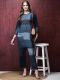 Blue Color Kurta with Comfort pant. Knee length kurta has 3/4 sleeves, Mandarin collar neck with pintex work, Both side short slits, One side pocket, High-low hemline. Pant has partially elasticated waistband with slip-on closure. Kurta and Pant made from Rayon (Liva) fabric.