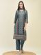 Shree Women Chanderi Teal Embroidered Kurta Trouser Dupatta