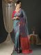 SAREE MALL Women's Silk Blend Teal blue Woven Design Designer Saree With Blouse Piece