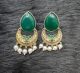 Brass Silver Oxidised Doul Tone Green Chand Earrings