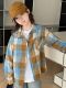 Checked Puff Sleeve Shirt Style Top