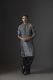 This striking kurta is crafted from luxurious crushed silk fabric in a deep gunmetal grey hue, offering a captivating textured finish and a subtle, rich sheen that adds depth to its appearance. The central focus is the intricate embellishment on the placket and upper chest, featuring detailed threadwork intertwined with dazzling mirror or sequin accents, creating a contemporary yet traditional design. Paired with contrasting black wide-leg trousers, this ensemble provides a balanced and elegant silhouette.