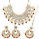 Maroon Color Imitation Pearl Kundan Necklace With Earrings & Maang Tikka For Women