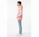 A soft, pastel pink hoodie featuring a whimsical white cloud pattern on the chest and sleeves.
