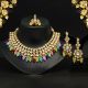 Gold Finish Kundan Polki & Turquoise Stone Choker Necklace Set