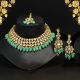 Gold Finish Kundan Polki & Turquoise Stone Choker Necklace Set