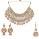 Peach Color Kundan Bridal Necklace With Earrings & Maang Tikka
