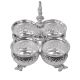 POSHIFY German Silver Kumkum-Haldi Holder - Four Attached Bowls and Handle, Sindoor-Turmeric, Pooja Room, Temple Decoration, Silverware, Puja Samagri, Diwali Gift, Wedding Gift