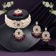 Aster,White Finish Zircon & Red Stone Necklace Set