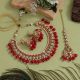 Adjustable Rope | Necklace Length: 24.00 CM x Width: 4.00 CM | Earring Length: 5.50 CM x Width: 2.00 CM | Maang Tikka Length: 18.00 CM x Width: 3.00 CM | Metal: Alloy With Good Quality Gold Plated | Color: Red | Stone: Kundan & Imitation Pearl | Gross Weight: 161.00 Grams | Package Content: 1 Piece Of Necklace:: 1 Pair Of Earring:: 1 Piece Of Maang Tikka | Back Finding: Post With Friction Back x Earring Style: Jhumki