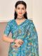 SAREE MALL Women's Crepe Blue Printed Designer Saree With Blouse Piece