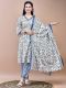 Shree Women Cotton Off-White Blue Floral Print Kurta Comfort Pant Dupatta