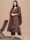 Rust Color Geometric print Kurta, Comfort pant, Dupatta. Calf length kurta has 3/4 sleeves, Round neck with Long placket and short front slit, flared hemline. Pant has partially elasticated waistband with slip-on closure. Kurta, Pant made from Cotton cambric fabric and Dupatta made from Cotton voile fabric.