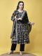 Shree Women Georgette Black Emboss Floral Print Kurta Trouser Dupatta