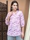 Onion Pink and Purple Color Texure print Hip length A-line tunic has 3/4 Bishop sleeves, V-neck, Flared hemline, Tunic made from Linen fabric.