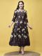 Black Multi Color Floral print Ankle length Fit and Flare dress has 3/4 sleeves, V-neck with sequence work, Flared hemline, Dress made from Liva fabric.