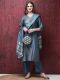 Shree Women Chanderi Teal Embroidered Kurta Trouser Dupatta