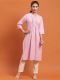 Lilac Color Solid Calf length Kurta has 3/4 sleeves, V-neck with Pintex work, both side slits, One side pocket, straight hemline.