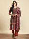 Maroon Color Geometric Print Kurta with Solid Comfort Pant and Printed Dupatta. Calf length kurta has 3/4th sleeves, V-neck, both side slits, straight hemline. Pant has partially elasticated waistband with slip-on closure, one side pocket.