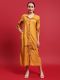 Mustard color Ankle length Solid Dress has 3/4 sleeves, Shirt collar neck with long placket and front button closure, both side short slits, one side pocket, straight hemline, dress made from Rayon (Liva) fabric.