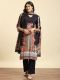 Navy Blue Color Kurta, Comfort Pant with Dupatta. Calf length floral print kurta has 3/4th sleeves, V-neck, both side slits, straight hemline. Solid pant has partially elasticated waistband with slip-on closure, one side pocket.