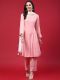 Pink Color Solid Kurta, Comfort Pant, Dupatta. Calf length A-line kurta has Full sleeves, V-neck with lace, one side pocket, flared hemline. Pant has partially elasticated waistband with slip-on closure. Kurta and Pant made from Liva fabric and White color solid dupatta made from Chiffon fabric.