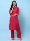 Pink Color Kurta With Comfort Pant. Geometric Print Calf Length Kurta Has 3/4Th Sleeves, Round Neck, Both Side Slits, Straight Hemline. Stripe Print Comfort Pant Has Partially Elasticated Waistband With Slip-On Closure, One Side Pocket. Kurta And Pant Made From Muslin Fabric.