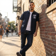 Dark navy, short-sleeve zip-up shirt with vintage workwear styling and multiple stitched graphic patches. Relaxed fit, perfect for casual, street, or alternative fashion.