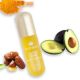 Jojoba Oil, Cocoa Butter, Avocado Oil, Vanilla, Vitamin E, Beta Carotene, Almond Oil, Olive Oil, Turmeric, Castor Oil, Coconut Oil, Algae, Carrot Oil (Beta Carotene)