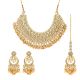 Adjustable Rope | Necklace Length: 22.00 CM x Width: 6.50 CM | Earring Length: 8.00 CM x Width: 3.00 CM | Maang Tikka Chain Length: 7.00 CM | Maang Tikka Length: 11.00 CM x Width: 3.00 CM | Metal: Alloy With Good Quality Gold Plated | Color: White | Stone: Imitation Pearl & Kundan | Back Finding: Post with Friction Back x Earring Style: Dangle | Package Content: 1 Piece Of Necklace::1 Pair Of Earring::1 Piece Of Maang Tikka