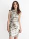 Silver-toned and gold-toned embellished sheath dress,High neck,Sleeveless,Mini length in straight hem,Concealed zip closure,,Size & Fit,The model (height 5'8) is wearing a size S,,Material & Care,Polyester,Hand Wash,,Specifications,Shape-Sheath,Neck-High Neck,Length-Mini,Print or Pattern Type-Embellished,Sleeve Length-Sleeveless,Sleeve Styling-No Sleeves,Occasion-Casual,Knit or Woven-Woven