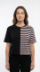 Women's Two-Tone Spliced Crop Tee - Black & Pink Stripe Split Top