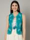teal blue embroidered shrug with neck tie-up details & tassel, Sleeveless Bohemian style & lace